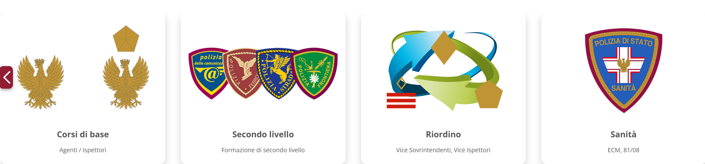 Quella superiore contiene i riferimenti per accedere alle informazioni che riguardano l'Ispettorato delle Scuole della Polizia di Stato, le Scuole, degli Istituti e dei Centri di formazione della Polizia di Stato, nonché l’organizzazione didattica.
